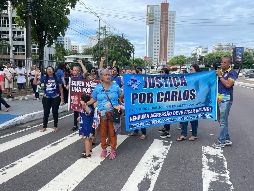 Familiares de jovem autistas agredido na Colônia Terra Nova pedem justiça durante manifestação