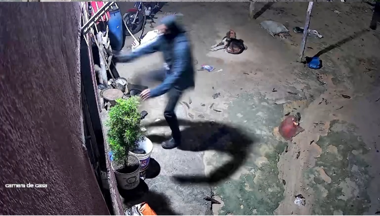 De acordo com testemunhas, dois criminosos arrombaram a porta da casa enquanto um terceiro dava apoio em um veículo, que pode ser um HB20. Ao invadirem a residência, os assaltantes renderam os moradores, amarraram uma das vítimas e ameaçaram os demais enquanto recolhiam objetos de valor.