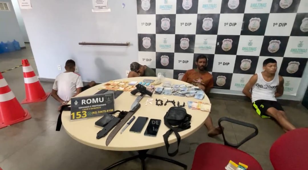 Durante a operação, foram apreendidos aparelhos celulares com suspeita de furto, facões, quantias em dinheiro (com notas de R$ 2, R$ 5 e R$ 20) e outros itens associados a práticas criminosas. Os detidos foram conduzidos ao 1º Distrito Integrado de Polícia (DIP) para os procedimentos legais.