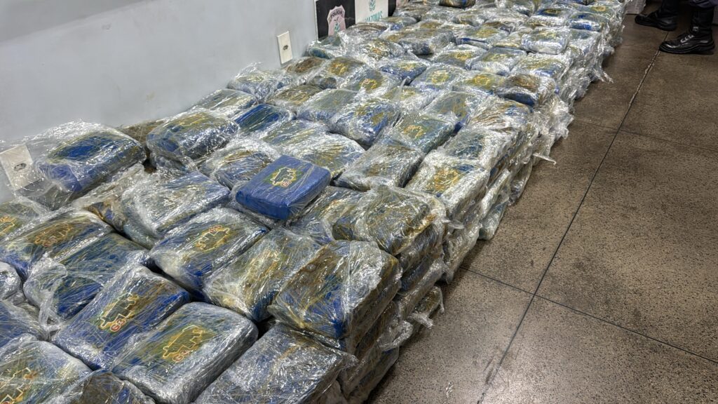 A droga, ainda em processo de identificação pericial, foi encontrada armazenada em caixas lacradas, que estavam distribuídas em lanchas. A princípio, a substância aparenta ser maconha, mas a confirmação dependerá da análise técnica realizada pela Polícia Civil.