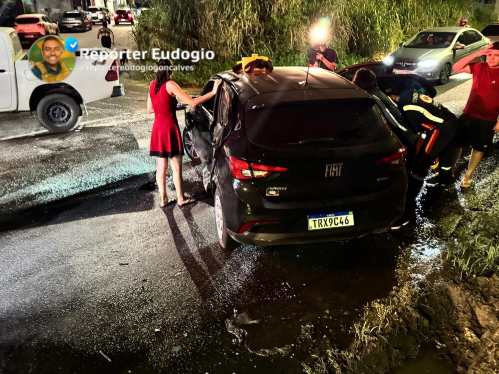 De acordo com informações preliminares, um veículo Fiat Argo, de placa TRX-9C46, que atuava como carro de aplicativo, transportava dois passageiros no momento do impacto. O motorista ficou preso às ferragens e apresentava fortes dores no braço esquerdo, enquanto os passageiros sofreram ferimentos leves.