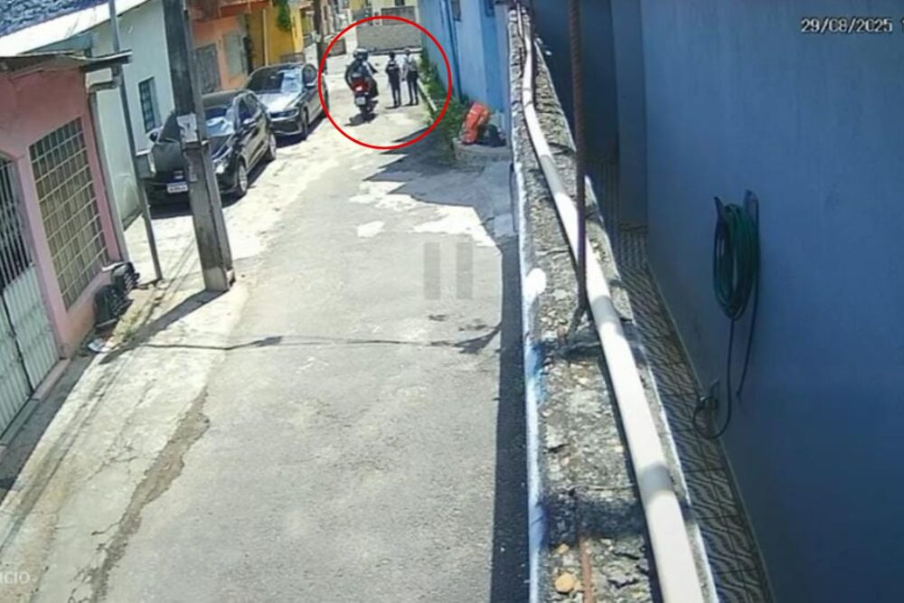 Câmeras de segurança instaladas na área registraram o momento em que os meninos foram abordados por dois suspeitos que estavam em uma motocicleta.