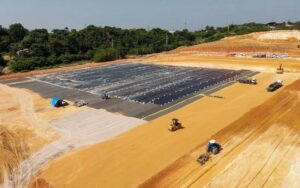 Segundo o gerente do aterro, Peter Maia, o empreendimento também terá uma nova lagoa de chorume, com tecnologia para tratamento avançado de efluentes. O chorume tratado será reutilizado em processos internos de hidrossemeadura e umedecimento das vias, reforçando o conceito de economia circular dentro da própria operação.