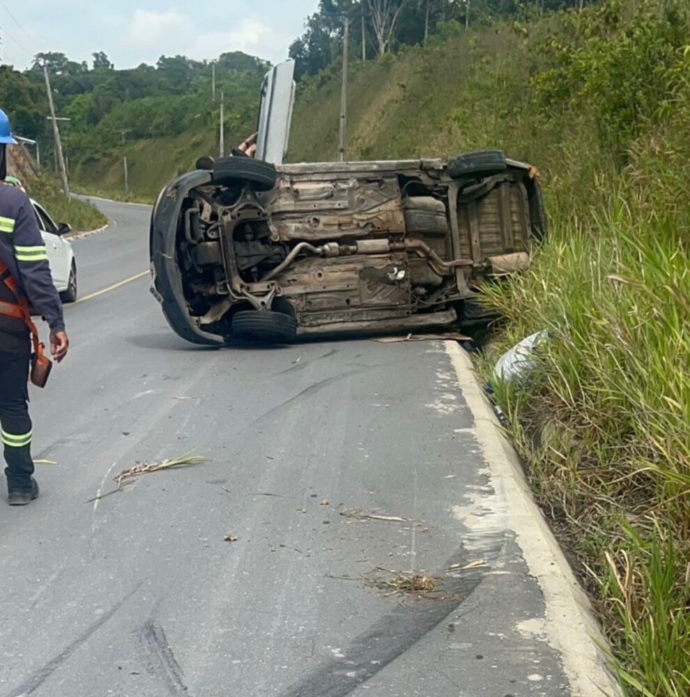 Manaus/AM – Um carro modelo Saveiro capotou na tarde desta segunda-feira (20) no quilômetro 124 da rodovia AM-010, que liga Manaus ao município de Itacoatiara. O acidente ocorreu quando o condutor perdeu o controle da direção do veículo.