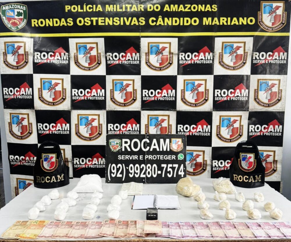 A Polícia Militar do Amazonas (PMAM), por meio das Rondas Ostensivas Cândido Mariano (ROCAM), prendeu um homem de 31 anos com mandado de prisão em aberto por tráfico de drogas. A ação ocorreu na tarde desta terça-feira (21), por volta das 15h10, na rua Beija-Flor, bairro Riacho Doce 1, zona norte de Manaus.