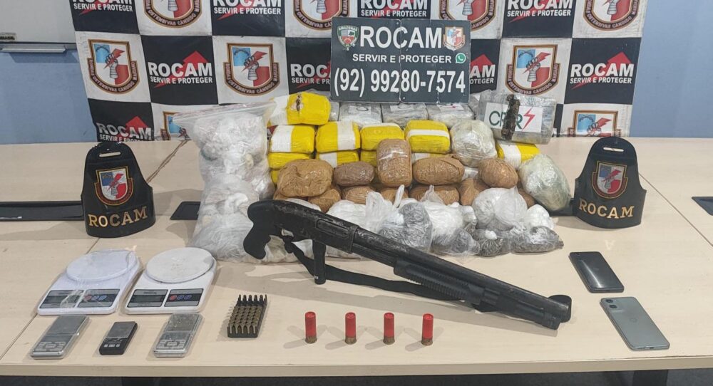 De acordo com informações da PM, a prisão ocorreu após denúncias anônimas indicarem que o suspeito estaria comercializando entorpecentes na área. Durante a abordagem, os policiais encontraram com o jovem uma mochila contendo cocaína, uma espingarda calibre 12 e diversas porções de drogas embaladas e prontas para a venda.