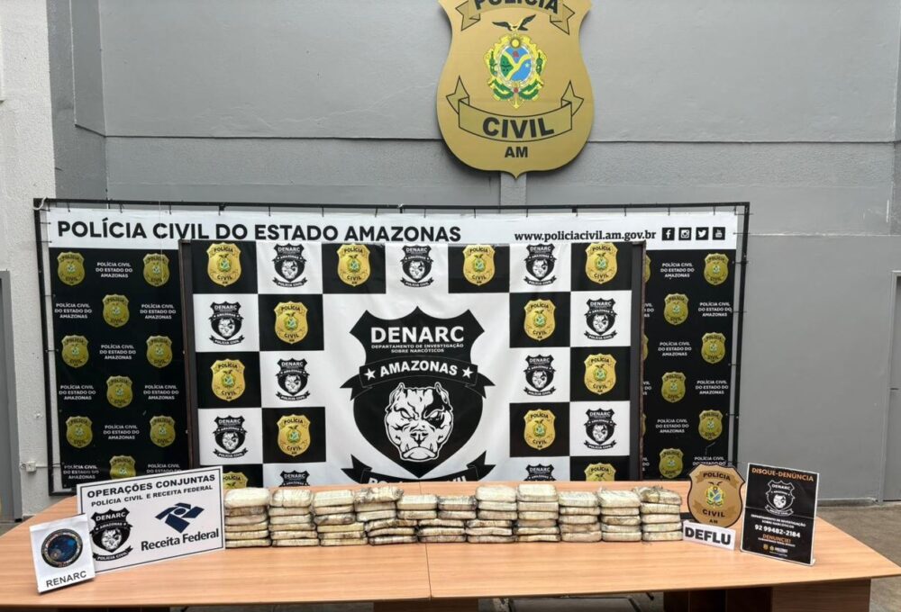 MANAUS (AM) — A Polícia Civil do Amazonas (PC-AM), por meio do Departamento de Investigação sobre Narcóticos (Denarc), com apoio da Delegacia Fluvial (Deflu) e da Receita Federal, apreendeu, na quinta-feira (30/10), cerca de 60 quilos de cocaína avaliados em R$ 4,5 milhões. A droga estava escondida dentro das rodas de uma caminhonete localizada em uma balsa nas proximidades do Porto da Ceasa, zona sul de Manaus.