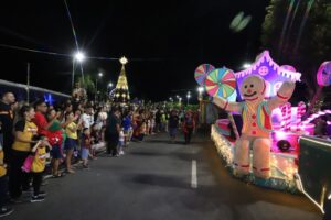 A Prefeitura de Manaus, por meio do Fundo Manaus Solidária (FMS), em parceria com a Nova Igreja Batista (NIB), realizou, nesta quinta-feira, 20/11, a Parada Natalina no complexo turístico Ponta Negra, zona Oeste. A orla foi contagiada pela magia do Natal, atraindo centenas de famílias que prestigiaram um desfile cheio de emoção.