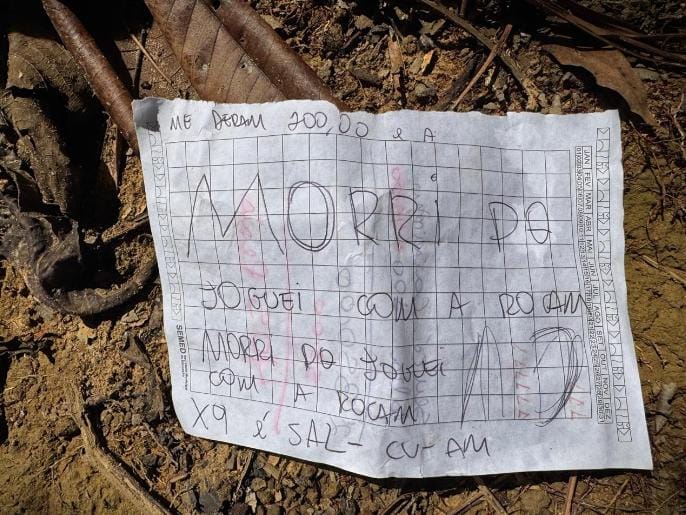 Próximo ao corpo, a Polícia Militar encontrou um bilhete que faz referência a uma facção criminosa e sugere que a vítima teria colaborado com forças policiais. A mensagem, segundo as autoridades, indica que o homicídio pode ter sido uma execução ligada ao crime organizado.