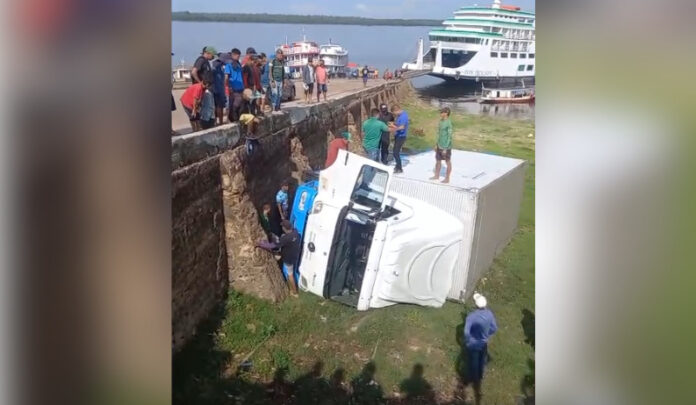 Na manhã desta quarta-feira (3), um caminhão baú tombou na região conhecida como Língua da Princesa, no Centro de Maués, a 276 quilômetros de Manaus. Apesar do susto, não houve feridos. O motorista recebeu atendimento médico e foi encaminhado ao Hospital Geral do Município, onde permanece fora de risco.