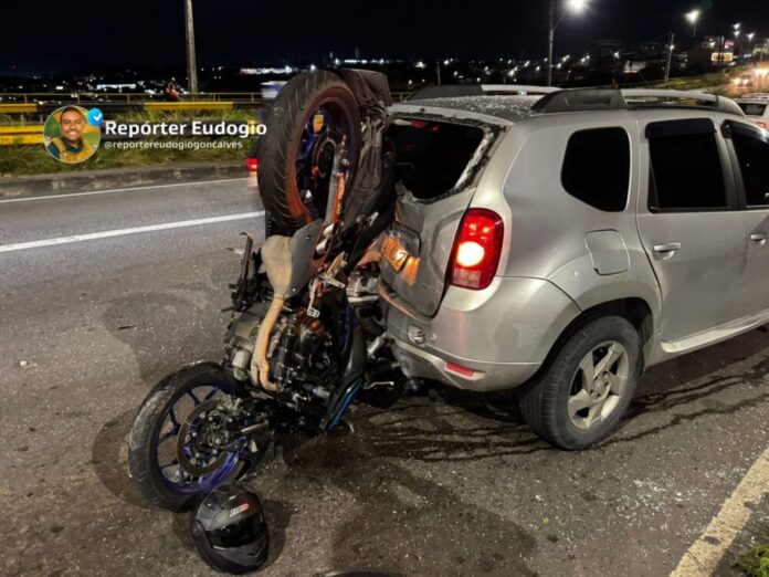 Segundo informações preliminares, o acidente envolveu uma motocicleta MT-03 de alta cilindrada e um veículo Duster que estava parado na via. A colisão foi violenta, e o motociclista sofreu fraturas nos dois braços e ferimentos no rosto, apesar de estar usando capacete.