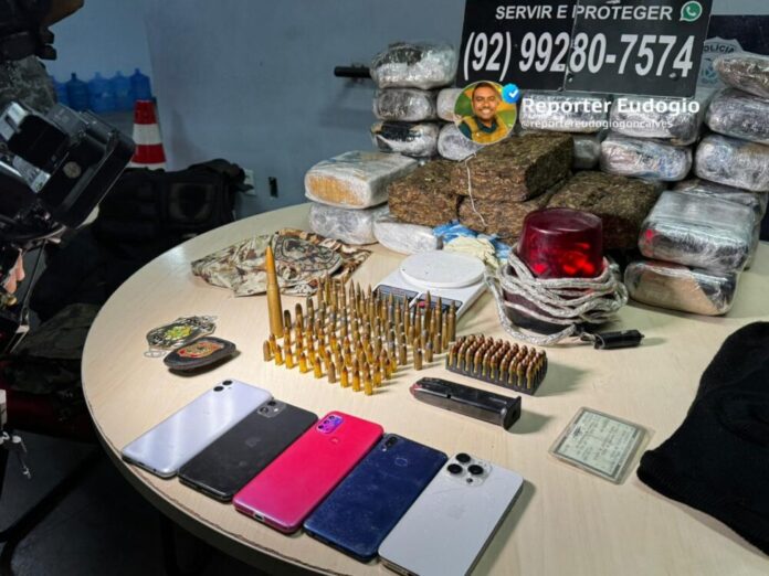 Durante a operação, os policiais apreenderam 33 tabletes de maconha, munições de diversos calibres incluindo .50 (utilizada em armamento pesado e aeronaves blindadas), 7.62, 5.56, .40 e 9mm, além de coletes balísticos, balaclavas, giroflex e distintivos falsos da Polícia Civil. Também foram apreendidos cinco celulares, possivelmente usados para a venda de drogas e comunicação da quadrilha.