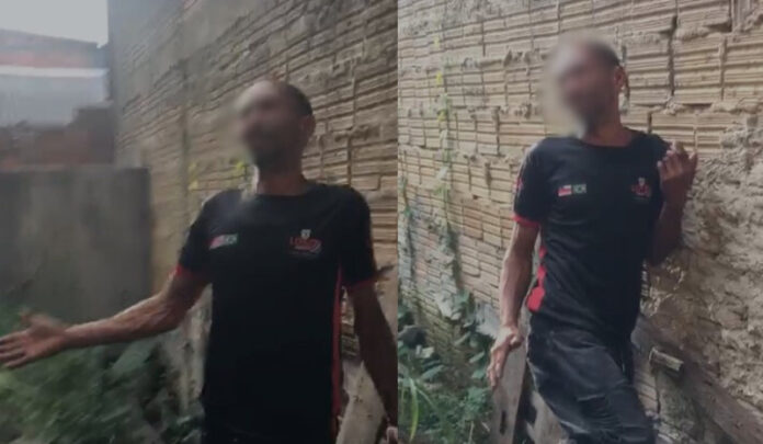 Nas imagens, o homem aparece afirmando que “tá sendo cobrado” por um vacilo. Ele é atingido repetidamente nas mãos e chega a chorar de dor, implorando para que as agressões cessem. Apesar das súplicas, a pessoa que aplica a punição responde: “É só cinco”.