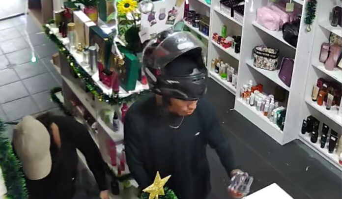 Durante o assalto, a mulher usava roupa preta e boné. Já o homem estava de capacete, porém com a viseira levantada, o que permitiu o registro parcial de seu rosto pelas câmeras de segurança.
