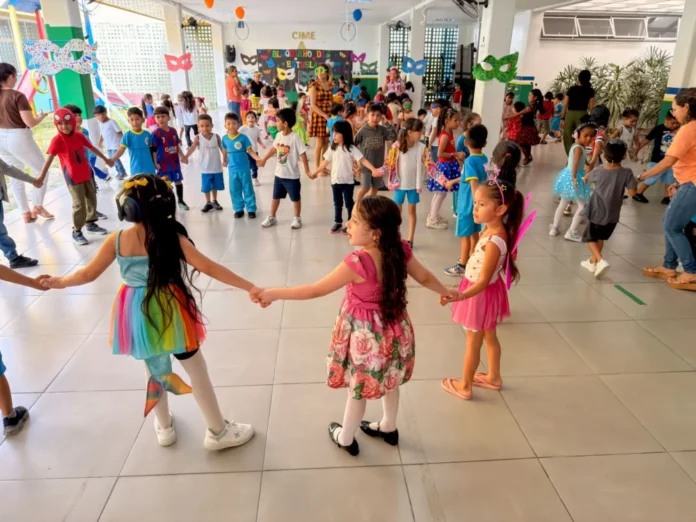 O Centro Integrado Municipal de Educação (Cime) Dra. Viviane Estrela Marques Rodella, da Prefeitura de Manaus, realizou nesta quinta-feira (12/2) o “Bailinho Estrela”, uma festa de Carnaval para aproximadamente 400 crianças de 4 a 6 anos. A iniciativa, que aconteceu no bairro Viver Melhor, teve como objetivo principal estimular a socialização e a integração entre os estudantes no início do ano letivo.