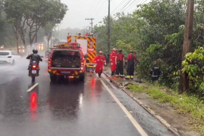 Um acidente de trânsito foi registrado na manhã desta quarta-feira (18), na Avenida do Turismo, localizada na zona oeste de Manaus, durante a forte chuva que atingiu a capital amazonense.