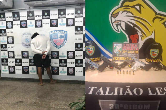 Uma ação da 30ª Companhia Interativa Comunitária resultou na apreensão de cinco armas de fogo e na prisão de um homem de 31 anos, na noite desta segunda-feira (23), na comunidade Valparaíso, localizada no bairro Jorge Teixeira, zona Leste de Manaus.