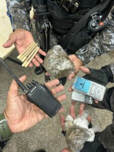 Além dos entorpecentes, os agentes também encontraram uma balança de precisão, rádios comunicadores do tipo HT, um aparelho celular, uma câmera de vigilância e uma quantia de dinheiro em espécie. Segundo a polícia, a câmera era utilizada para monitorar a movimentação de pedestres e possíveis viaturas policiais nas proximidades, estratégia comum usada por traficantes para evitar flagrantes.