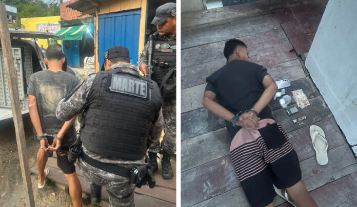 Dois homens, cujas identidades não foram divulgadas pelas autoridades, foram presos suspeitos de envolvimento com o tráfico de drogas no Parque Mauá, localizado no bairro Mauazinho, na zona leste de Manaus.