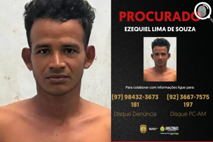 A Polícia Civil do Amazonas (PC-AM), por meio da Delegacia Especializada de Polícia (DEP) de Tefé (a 523 quilômetros de Manaus), divulga a imagem de Ezequiel Lima de Souza, de 34 anos, procurado pelo crime de lesão corporal contra a cunhada, de 19 anos. O crime ocorreu no dia 8 de março deste ano, no município.