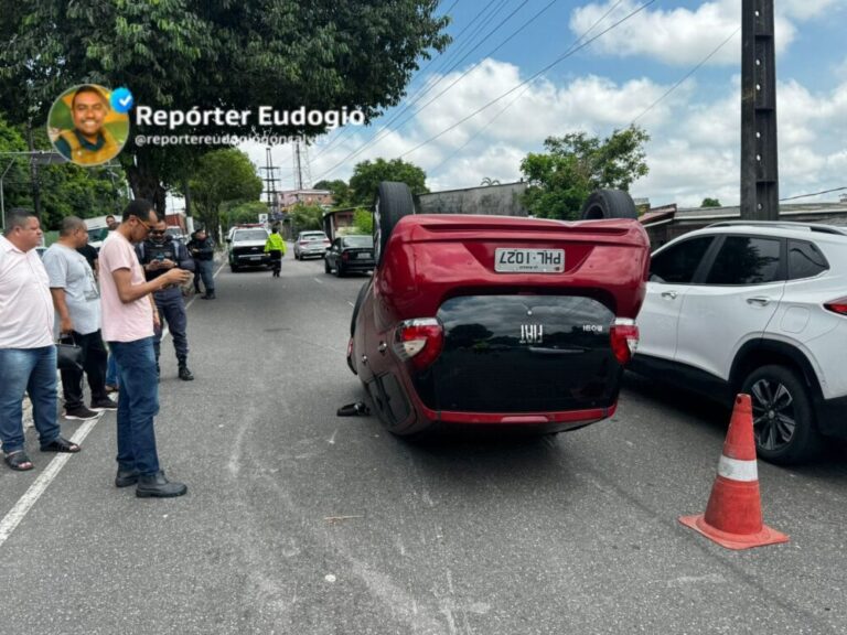 Vídeo mostra o momento em que carros colidem e um deles capota no bairro Dom Pedro