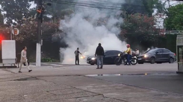 Um carro pegou fogo na manhã desta segunda-feira (15), na Rua Fortaleza,…