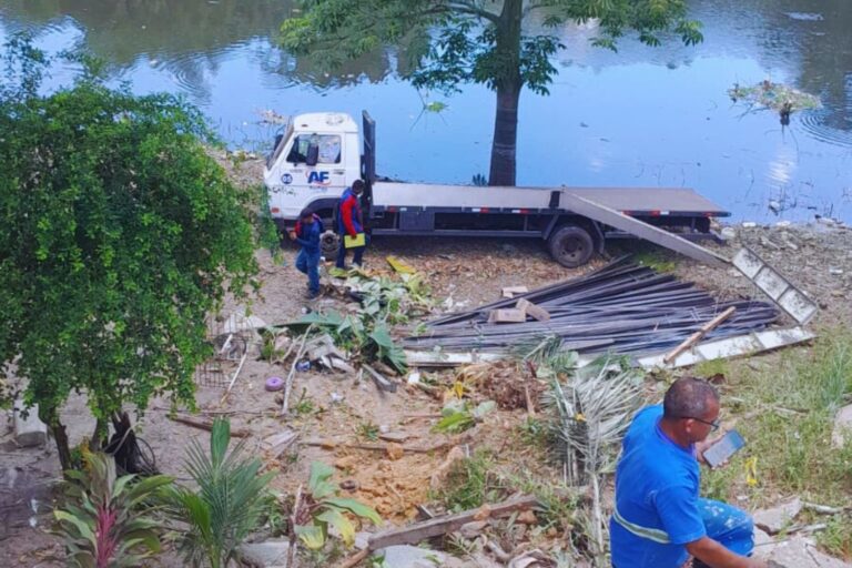 Manaus/AM – Um caminhão que transportava ferro perdeu o freio e capotou…