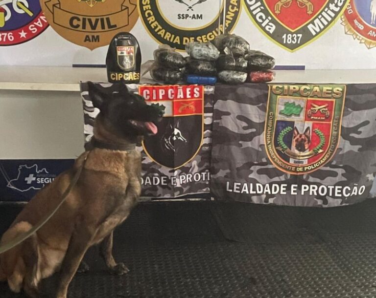 A cadela policial Havana, da Polícia Militar do Amazonas (PMAM), localizou 13,11…
