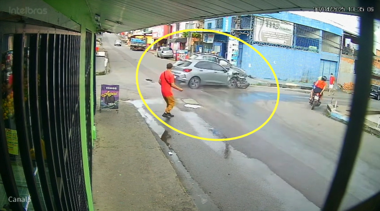 MANAUS | Imagens de circuito de segura de um estabelecimento, mostra o momento em que veículos colidem após perseguição no bairro Parque das Nações, zona Norte de Manaus.