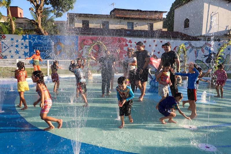 A Prefeitura de Manaus, por meio da Secretaria Municipal de Limpeza Urbana (Semulsp), entregou, nesta quarta-feira, 18/6, mais um atrativo para as famílias da zona Oeste da cidade: a praça molhada da lagoa da Compensa. O espaço já virou sucesso entre as crianças e deve se tornar um dos principais pontos de lazer da região, que conta ainda com pedalinhos, fazendinha, academia ao ar livre, pista de caminhada, quadra esportiva, anfiteatro, praças de alimentação, jardins e espaço pet.