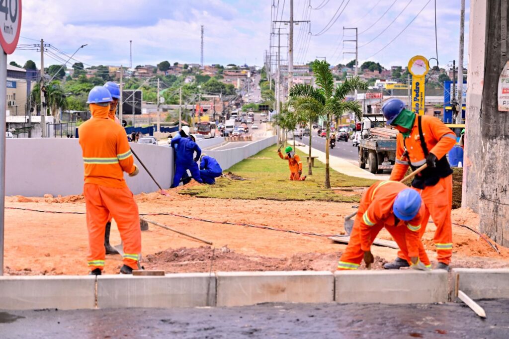 As frentes de trabalho estão concentradas na finalização do pavimento asfáltico da rotatória, na construção da calçada que vai interligar as avenidas Autaz Mirim e Itaúba, na execução de sarjetas e meio-fio, além do plantio de grama e da instalação de gradis na área do playground, que vai garantir mais segurança para as crianças e um melhor acabamento paisagístico.
