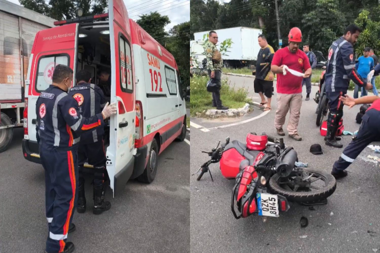 Motociclista fica em estado grave após colisão com caminhão na Avenida Santos Dumont, em Manaus