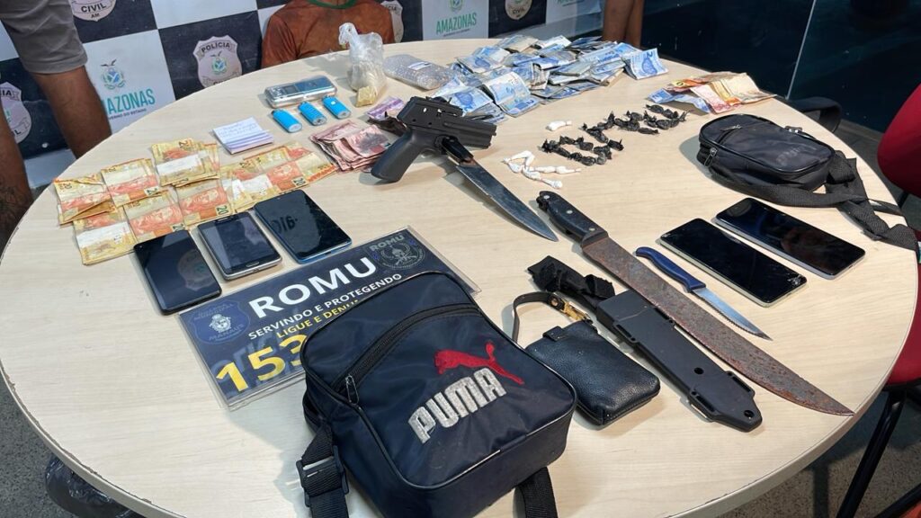 Durante a operação, foram apreendidos aparelhos celulares com suspeita de furto, facões, quantias em dinheiro (com notas de R$ 2, R$ 5 e R$ 20) e outros itens associados a práticas criminosas. Os detidos foram conduzidos ao 1º Distrito Integrado de Polícia (DIP) para os procedimentos legais.