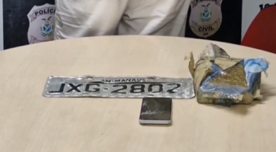 Os policiais iniciaram acompanhamento e conseguiram interceptar o carro. Durante a abordagem, foi encontrada com o suspeito uma porção de entorpecente do tipo “skunk”. Ele recebeu voz de prisão e foi encaminhado ao 1º Distrito Integrado de Polícia (DIP).