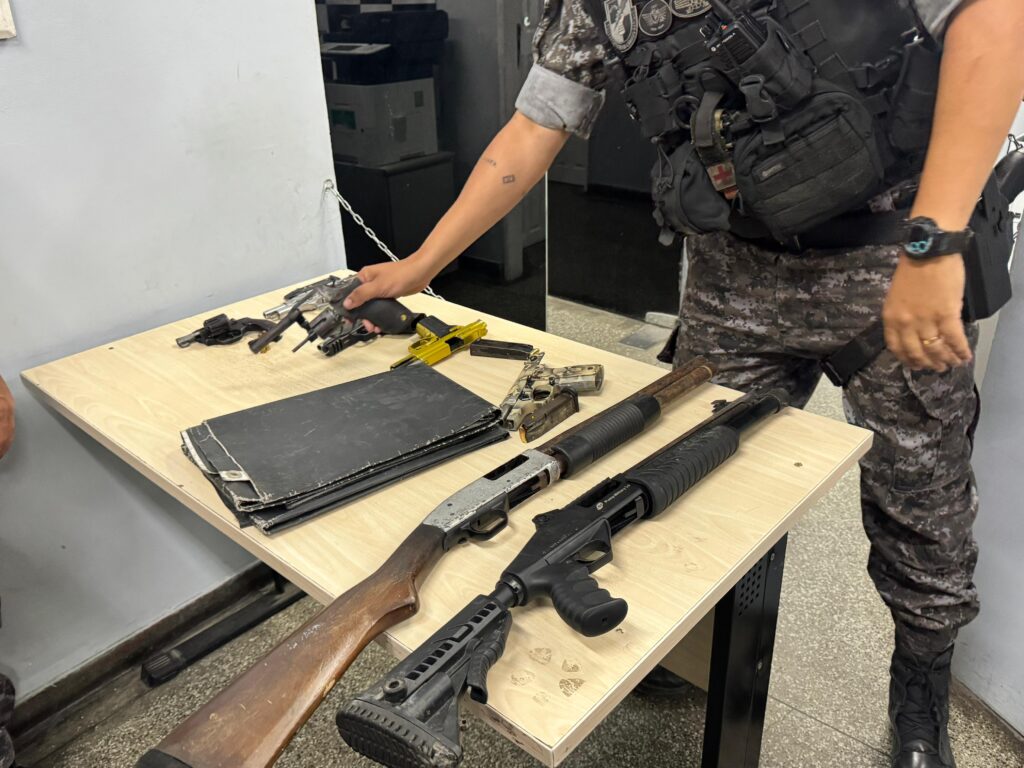 Segundo a Polícia Militar, a operação foi deflagrada após informações repassadas pelo setor de inteligência sobre um possível confronto entre facções criminosas na área. Entre os detidos, está um homem com mandado de prisão em aberto e outro apontado como liderança de uma facção criminosa que atua na cidade. As armas apreendidas incluem espingardas calibre 12, escopetas e revólveres, além de munições.