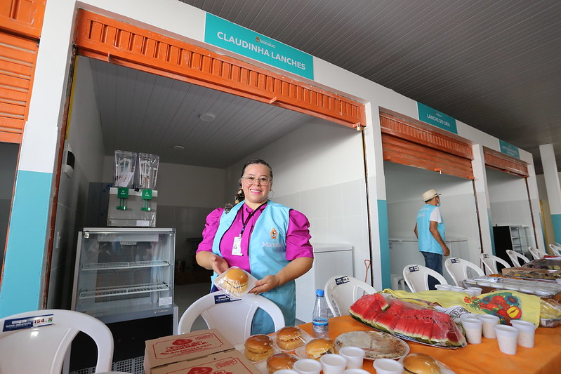 No Dia do Feirante, David Almeida entrega 1ª etapa da nova praça de alimentação da feira da Manaus Moderna
