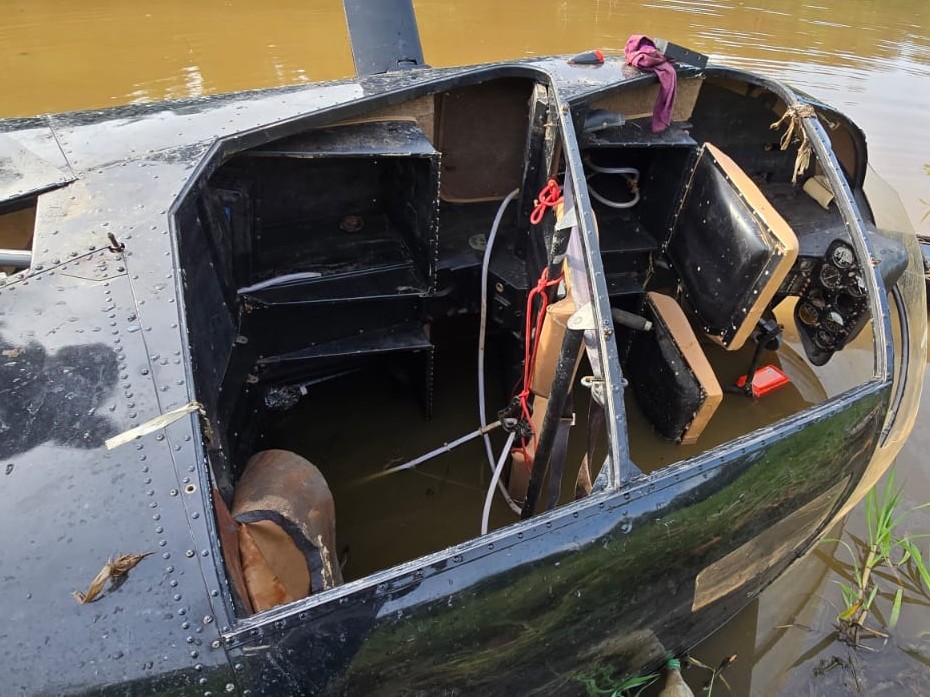 Juruá (AM) – 26/08/2025 – Um helicóptero de cor preta, modificado para o transporte de entorpecentes, foi localizado às margens de um lago no município de Juruá, distante 674 quilômetros de Manaus. A ocorrência foi registrada nesta segunda-feira (25), após denúncias anônimas. Durante a ação, as equipes encontraram dois tabletes de maconha do tipo skunk, pesando aproximadamente três quilos.