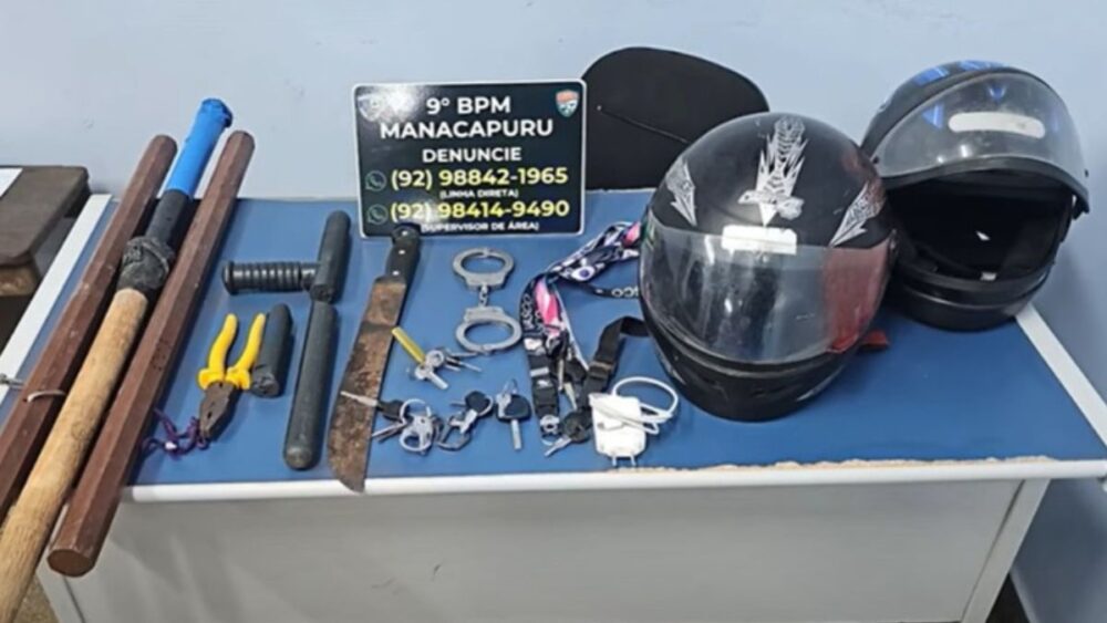 Durante a abordagem, foram apreendidos rádios comunicadores, cacetetes, celulares, dinheiro, munições, um terçado e uma arma de fogo roubada. Todo o material foi encaminhado, junto com os suspeitos, para a Delegacia de Manacapuru.