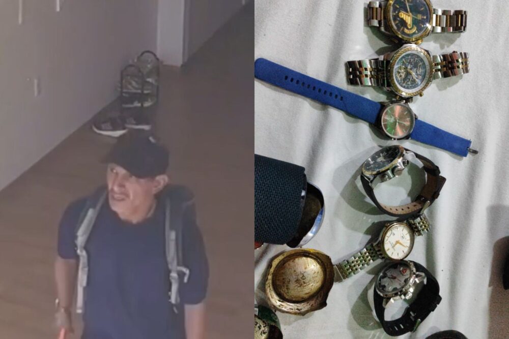 As imagens registradas por câmeras de segurança auxiliaram na identificação do suspeito, que passou a ser procurado. Parte dos objetos furtados foi recuperada no momento da prisão.